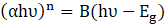 Where α is the absorption coefficient, h is Planck’s constant, ν is the incident photon frequency, B is the proportionality constant, and n=2 for direct allowed transitions.