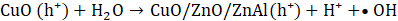 The proposed photocatalytic mechanism for MO degradation using Cu-20 LDH is depicted in Eqs. 7 – 10, derived from the heterostructure’s band alignment and ROS evaluation, is illustrated as follows. Upon light irradiation, CuO/ZnO/ZnAl LDH absorbs photons energy, promoting electrons from the valence band (VB) to the conduction band (CB) of each component, thereby generating e⁻– h⁺ pairs. Owing to the heterostructure’s favourable band offsets and high electrical conductivity, photogenerated electrons preferentially migrate to the CB of ZnAl LDH, while holes accumulate in the VB of CuO (Eq. 6), facilitating efficient charge separation.