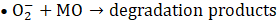 The transferred electrons react with dissolved O₂ to yield superoxide radicals (•O₂⁻) (Eq. 6), whereas holes oxidize surface-bound water to produce hydroxyl radicals (•OH) (Eq. 7) [43]. The synergistic action of •OH, •O₂⁻, and h⁺ enhance the mineralizes MO into CO₂ and H₂O (Eq. 8 -10).