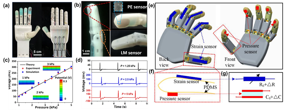 - E-skin for Prosthetic Devices: E-skin integrated into prosthetics and wearable devices enhances sensory feedback, allowing users to experience sensations like natural touch[29]. In healthcare, it enables continuous vital sign monitoring, improves surgical precision through real-time tactile feedback[28], and supports rehabilitation by providing responsive, adaptive feedback[30].