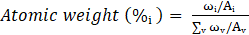 Where ωᵢ is weight % of a given metal and Aᵢ its corresponding atomic mass. ωᵥ and A ᵥ are the total weight percent and atomic masses of the elements.