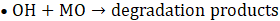 The transferred electrons react with dissolved O₂ to yield superoxide radicals (•O₂⁻) (Eq. 6), whereas holes oxidize surface-bound water to produce hydroxyl radicals (•OH) (Eq. 7) [43]. The synergistic action of •OH, •O₂⁻, and h⁺ enhance the mineralizes MO into CO₂ and H₂O (Eq. 8 -10).
